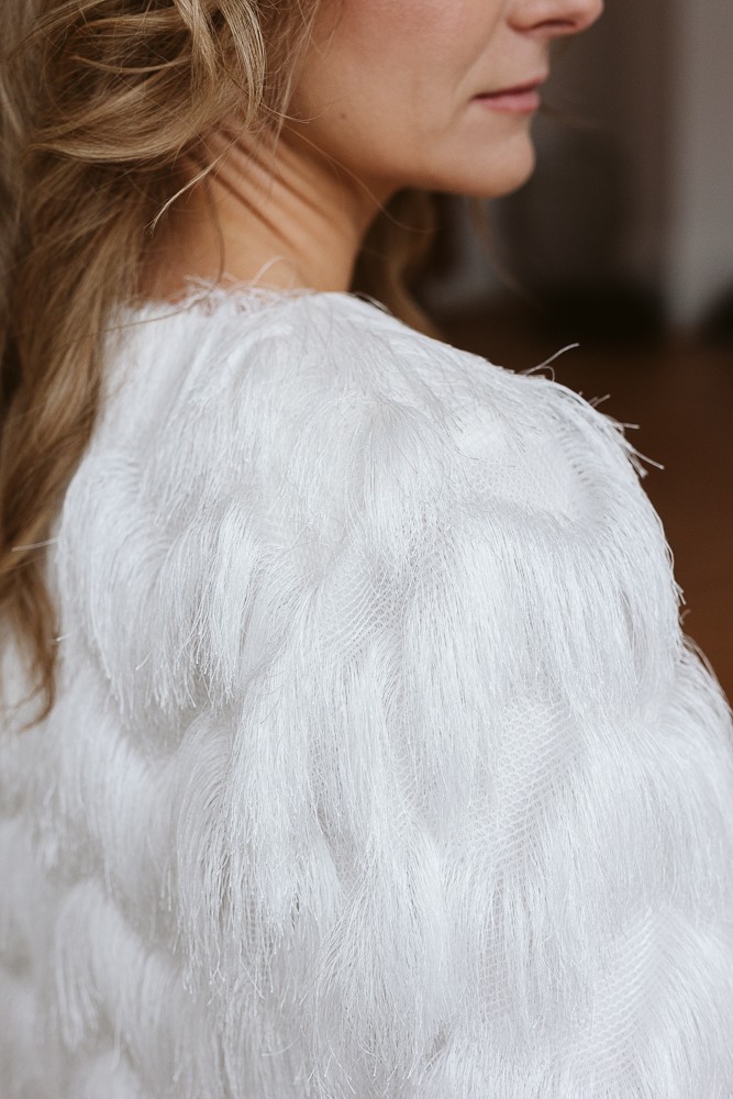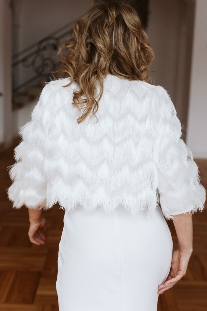 Krótkie bolerko z frędzlami – oryginalne okrycie ślubne i wieczorowe