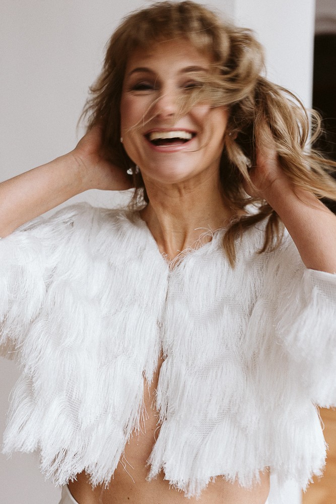 Wyjątkowe, minimalistyczne bolerko z efektownymi frędzlami to propozycja dla kobiet, które szukają czegoś naprawdę niepowtarzalnego. Idealne nie tylko jako okrycie dla panny młodej, ale również jako stylowy element garderoby na wyjątkowe okazje.