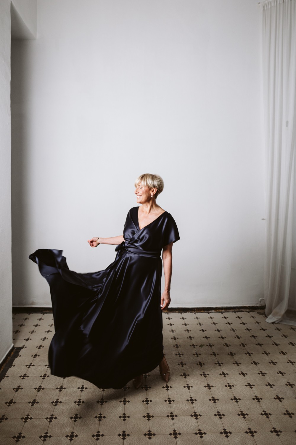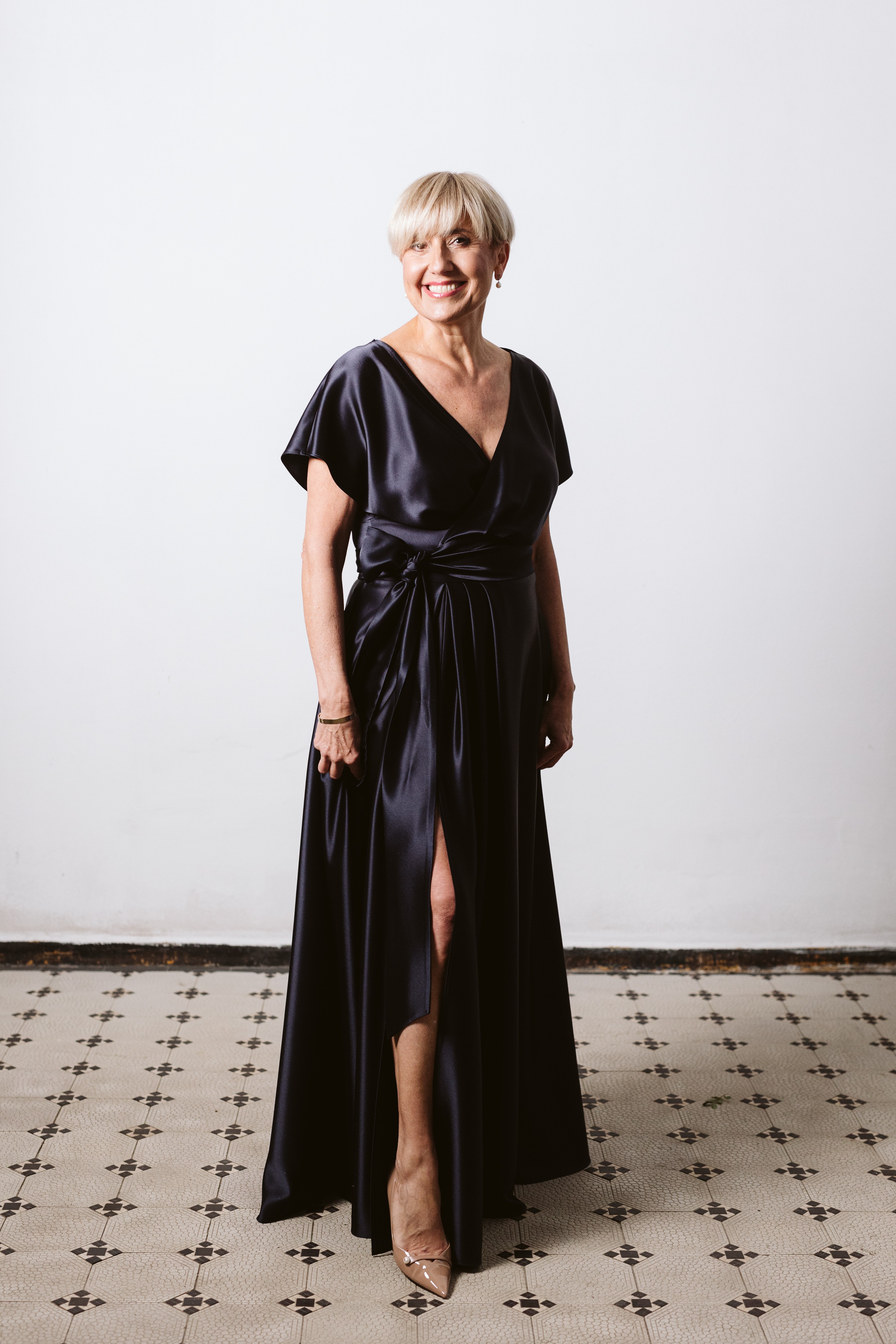 Całość wykonana jest z wysokogatunkowej satyny triacetatowej o szlachetnym połysku, która miękko układa się na ciele i podkreśla elegancki charakter stylizacji. To idealna propozycja na galę, wesele czy wieczorne wyjście, a jednocześnie zestaw, którego elementy można wykorzystać w wielu innych stylizacjach.