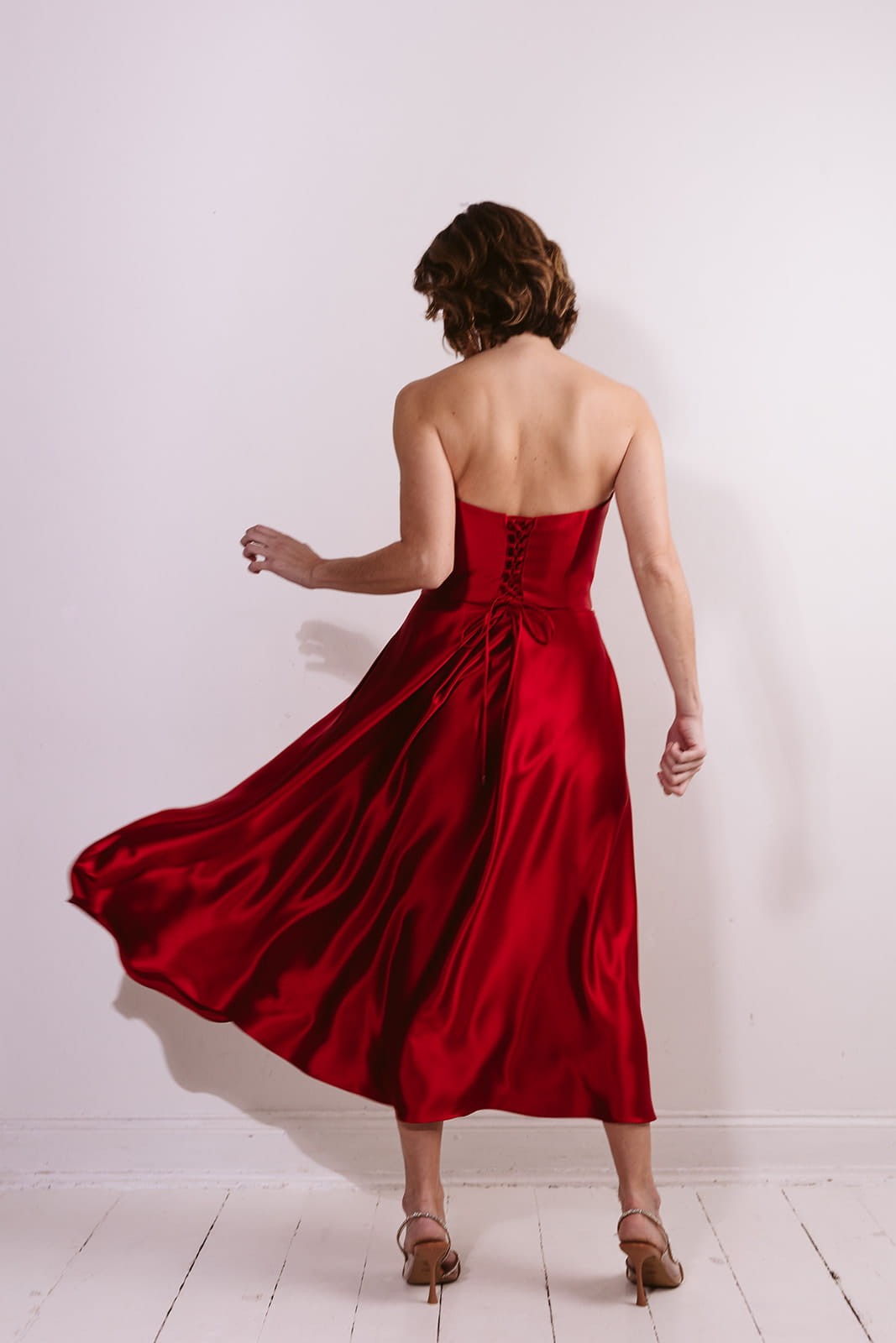 Kreacja szyta jest na miarę w naszej pracowni w Szczecinie. Rekomendujemy realizację z przymiarkami na miejscu, które pozwalają na idealne dopasowanie gorsetu i spódnicy do sylwetki.