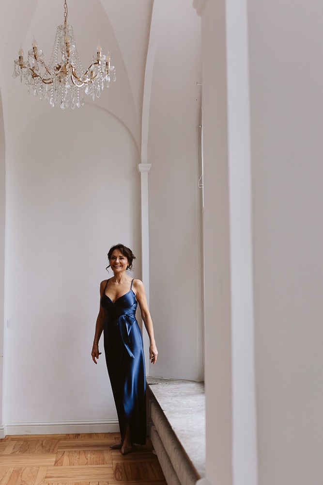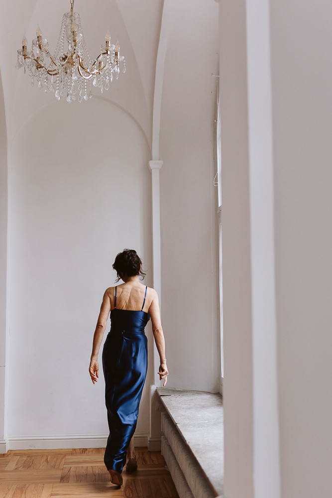 Kreacja szyta jest na miarę w naszej pracowni w Szczecinie. Rekomendujemy realizację z przymiarkami na miejscu, które pozwalają na idealne dopasowanie topu i spódnicy do sylwetki.