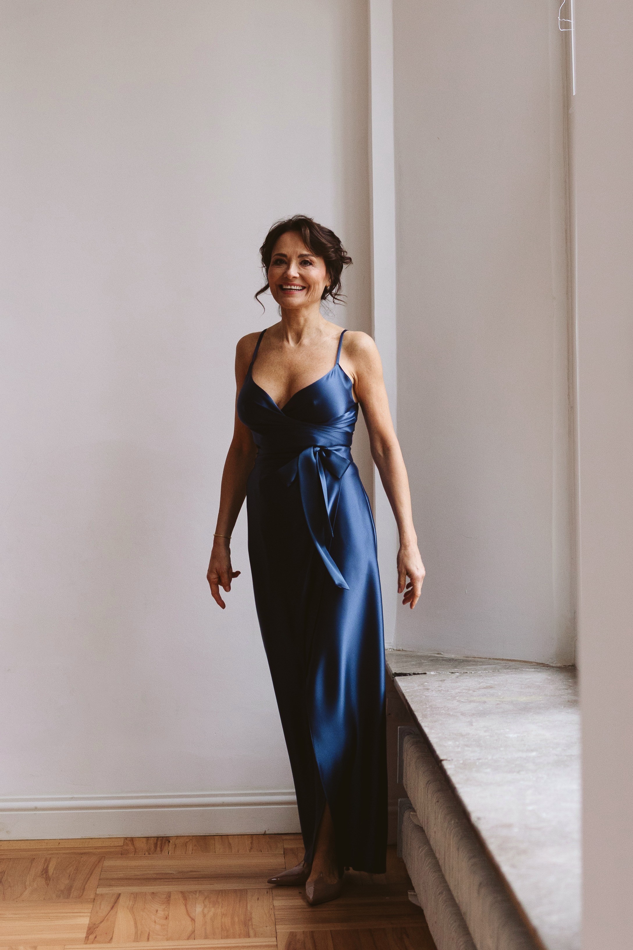 Zestaw wykonany jest z wysokogatunkowej satyny triacetatowej o szlachetnym połysku, która miękko układa się na sylwetce i pięknie pracuje w ruchu. To propozycja na wyjątkowe okazje – od eleganckich kolacji, przez wesela, aż po wieczorne wyjścia w bardziej nowoczesnym wydaniu.