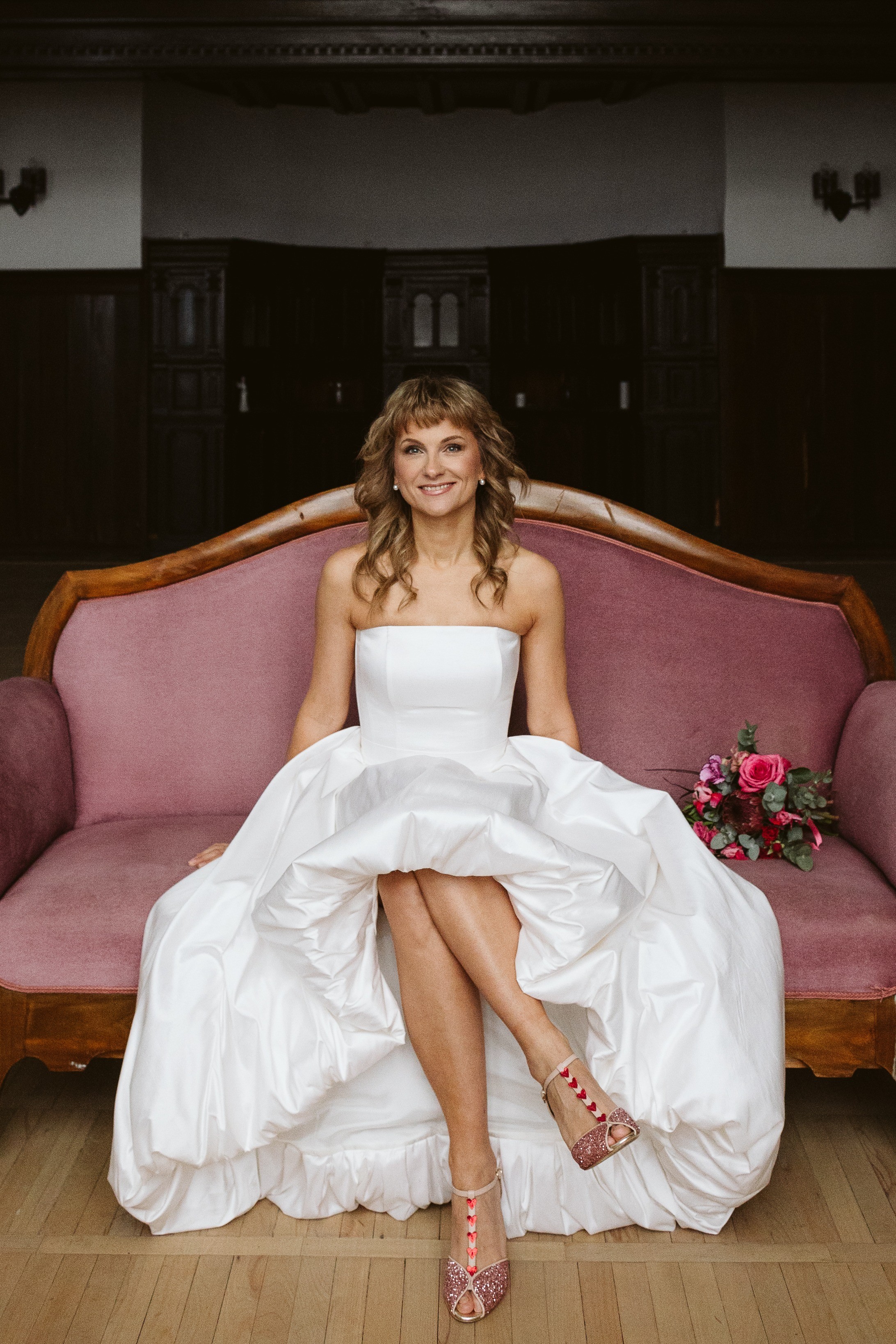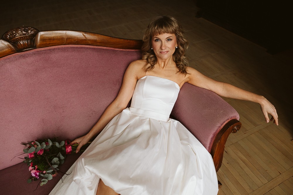 Elegancki gorset ślubny o minimalistycznej, dopracowanej formie. Uszyty z wysokiej jakości jedwabnego szantungu w kolorze ecru, wyróżnia się subtelnym połyskiem i charakterystyczną, szlachetną strukturą materiału.
