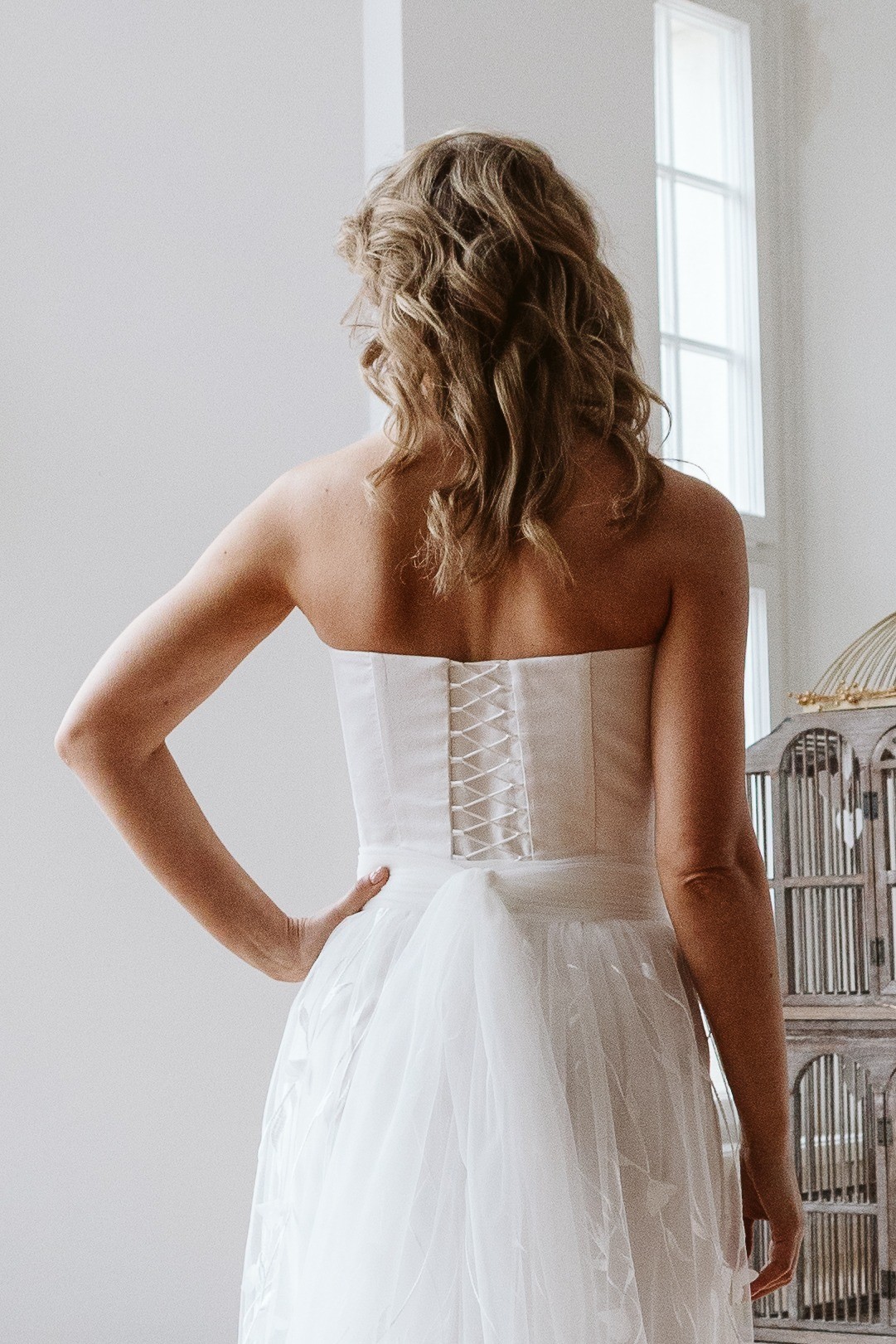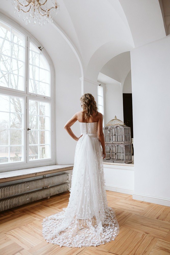 Model szyty jest na miarę w naszej pracowni w Szczecinie. Rekomendujemy realizację z przymiarkami na miejscu, które pozwalają na idealne dopasowanie gorsetu do sylwetki.