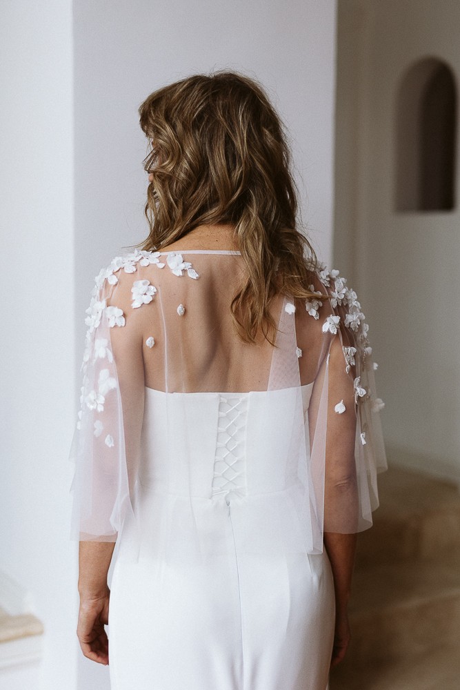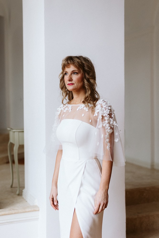 Pelerynka ślubna z tiulu z aplikacjami 3D