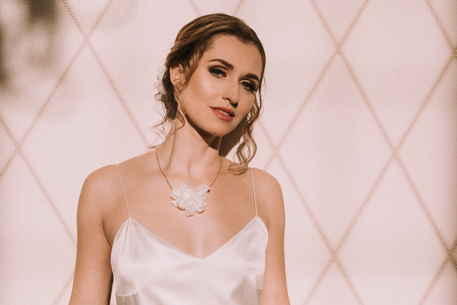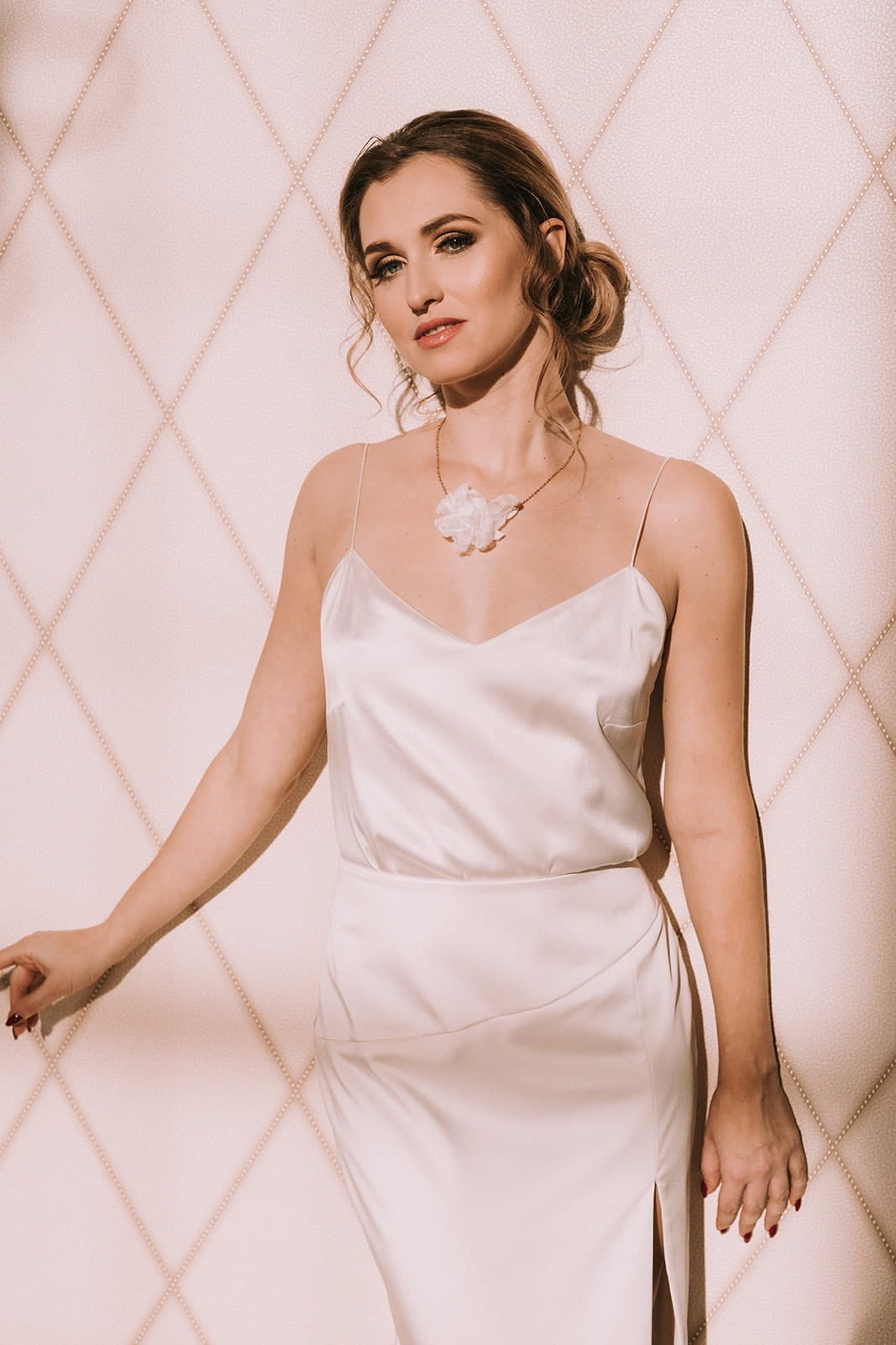 - uszyta z satyny jedwabnej