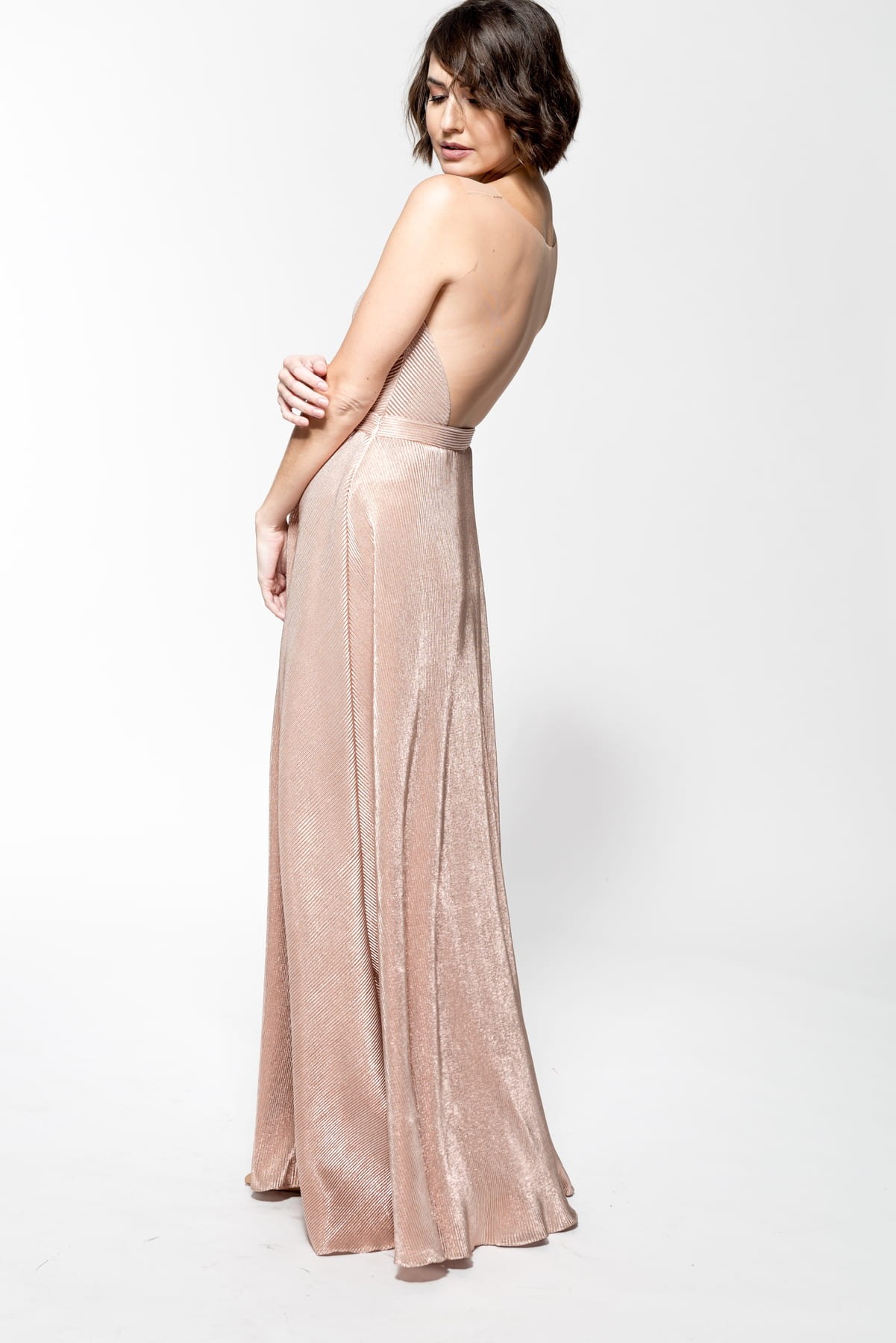 Niezwykle efektowne body uszyte z cielistej siatki oraz metalicznego elastycznego materiału. Głęboki hollywoodzki dekolt pięknie wydłuża sylwetkę. Świetnie wygląda z każdą z rozkloszowanych maxi spódnic. Świetnie komponuje się też z eleganckimi szerokimi spodniami z kolekcji. Idealna baza to tworzenia wielu wyjątkowych stylizacji, która dzięki klasycznej formie zawsze będzie w modzie!