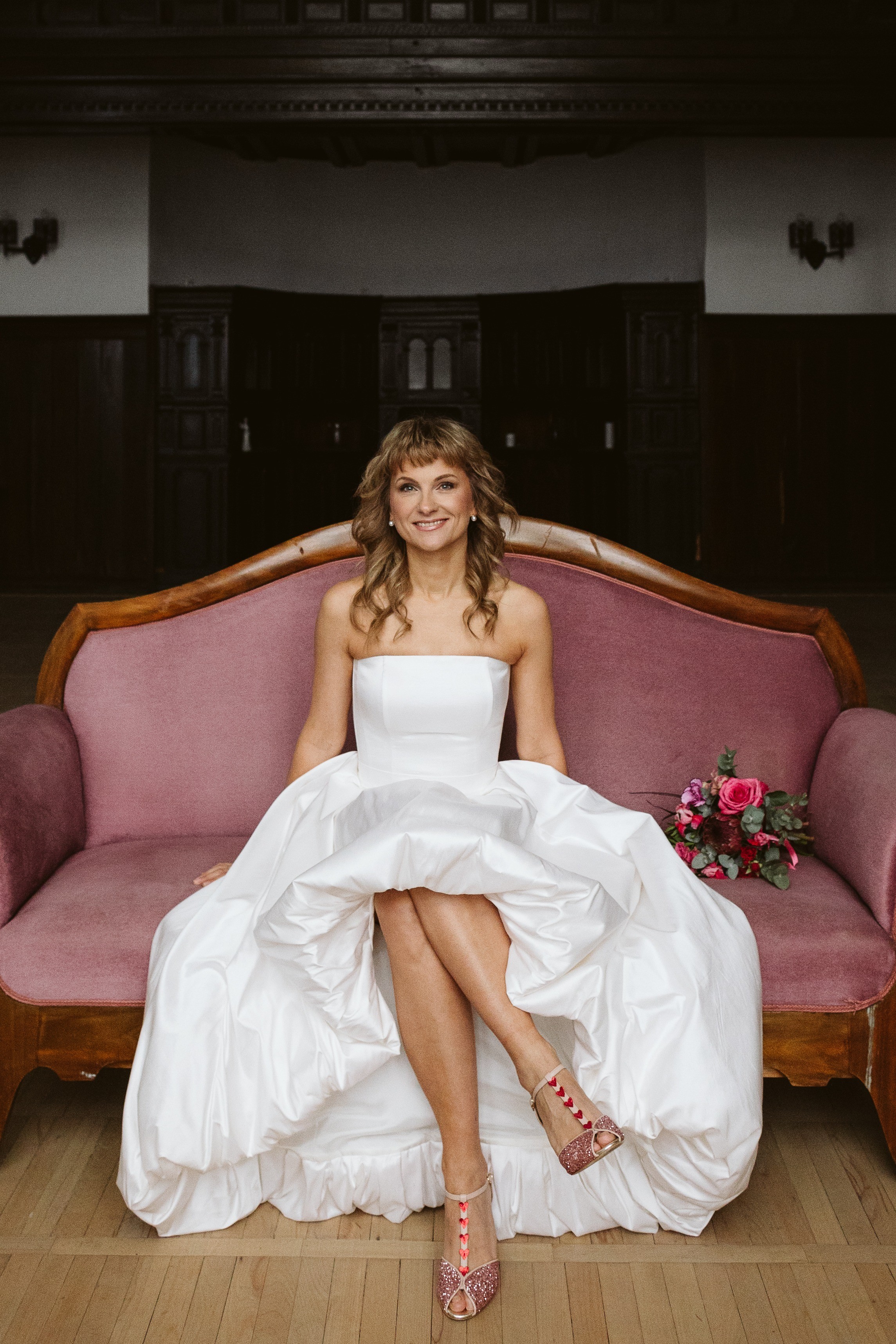 Model w kolorze ivory (złamana biel) doskonale wpisuje się w nowoczesne, ale ponadczasowe stylizacje ślubne. To idealna alternatywa dla klasycznej sukni – spektakularna, a jednocześnie niezwykle stylowa.