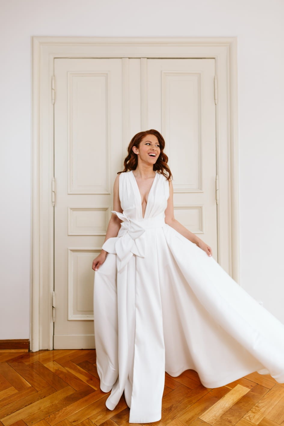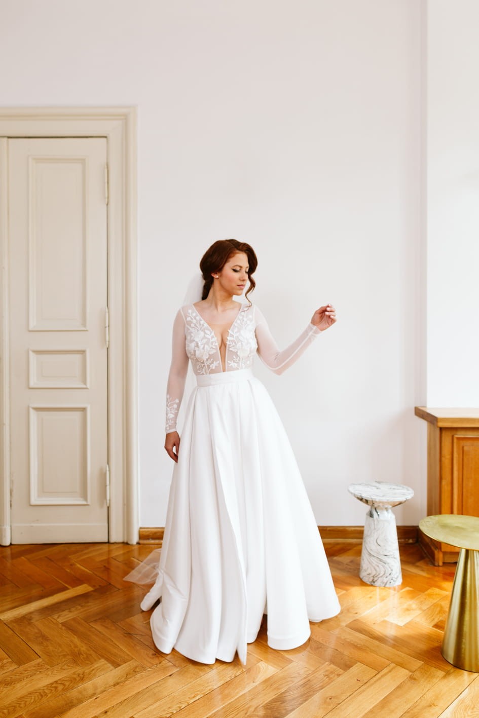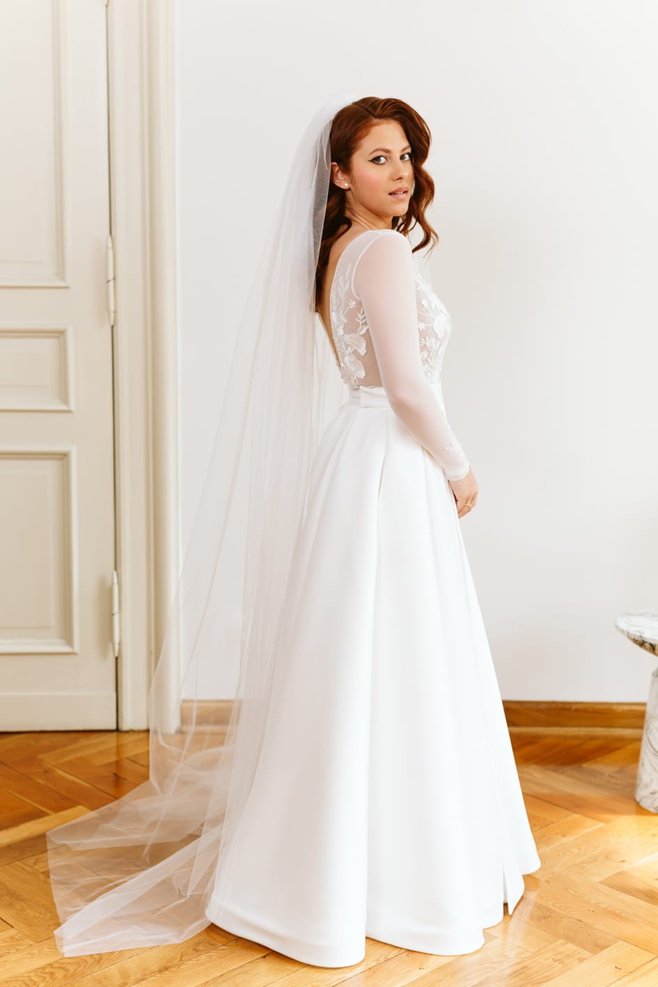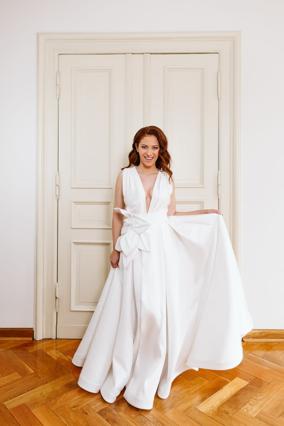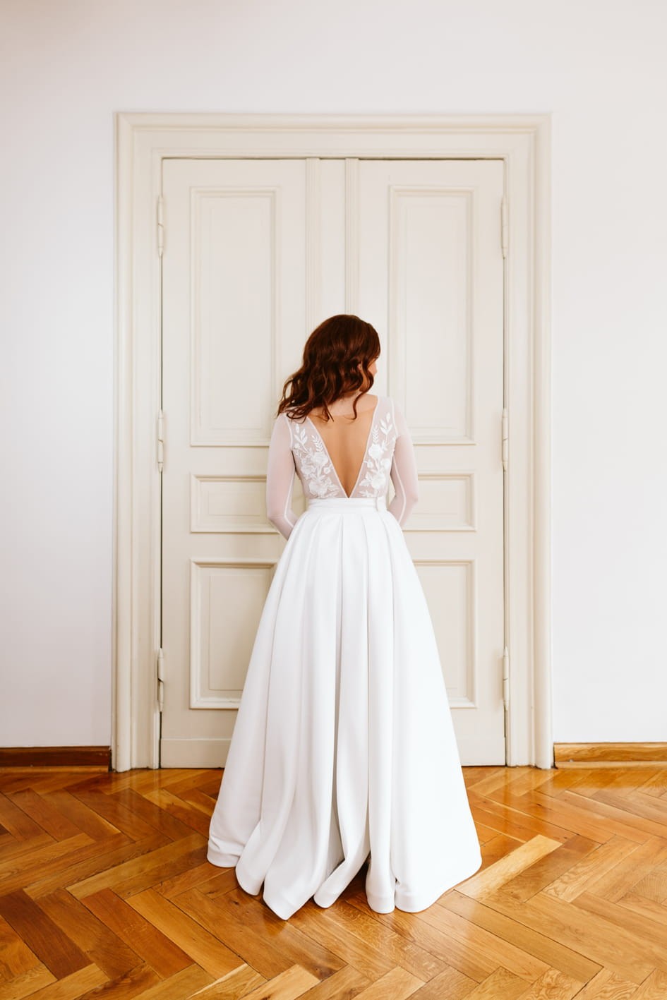 Model szyty jest na miarę w naszej pracowni w Szczecinie. Rekomendujemy realizację z przymiarkami na miejscu, które pozwalają na idealne dopasowanie spódnicy do sylwetki.