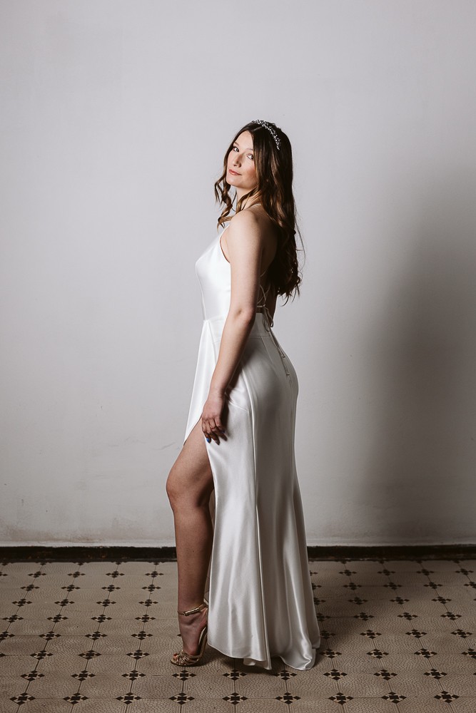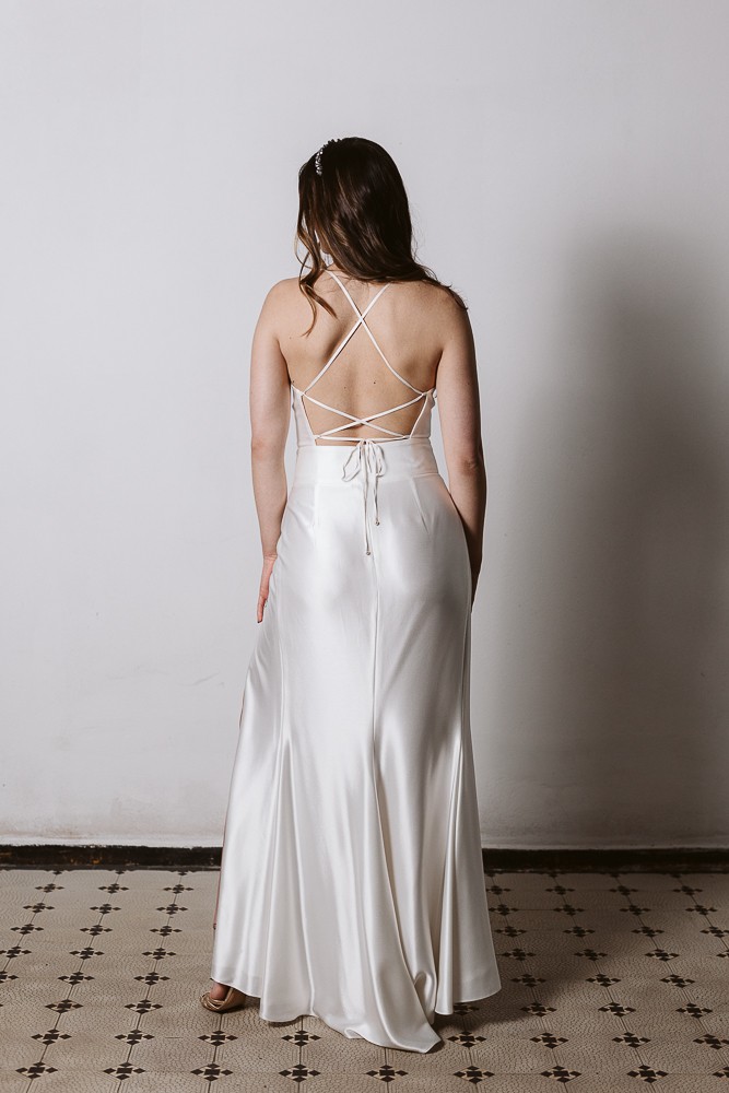 Ta spódnica to idealny wybór dla panny młodej kochającej minimalizm i kobiecy szyk.