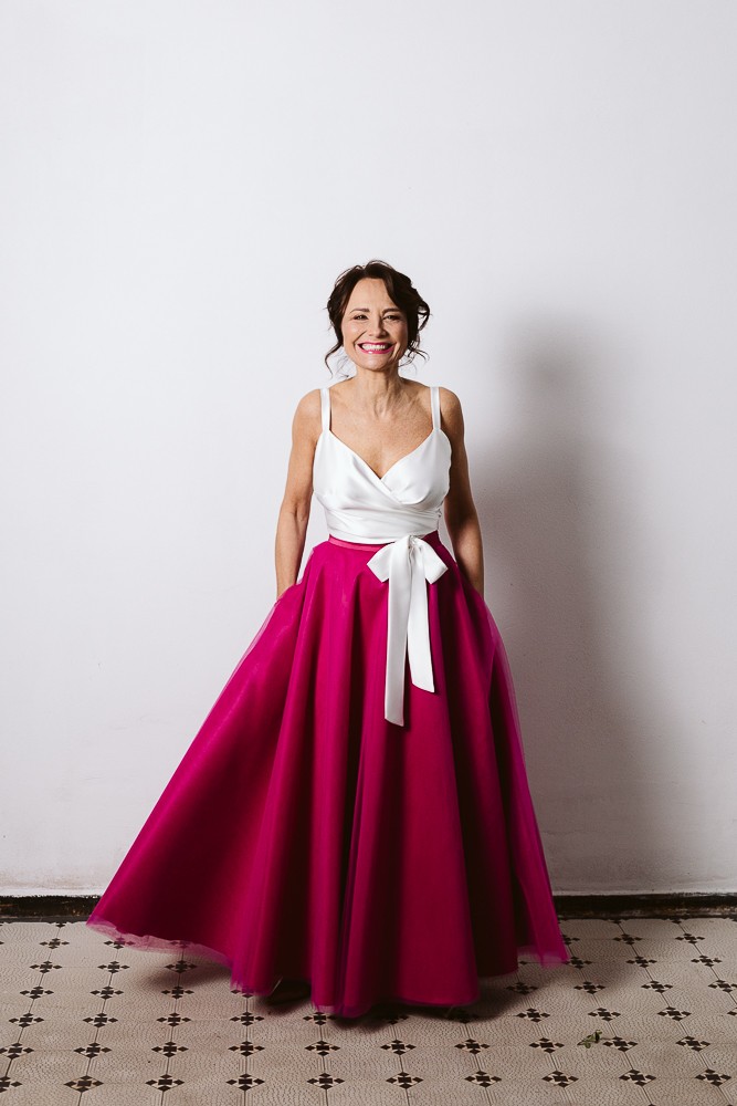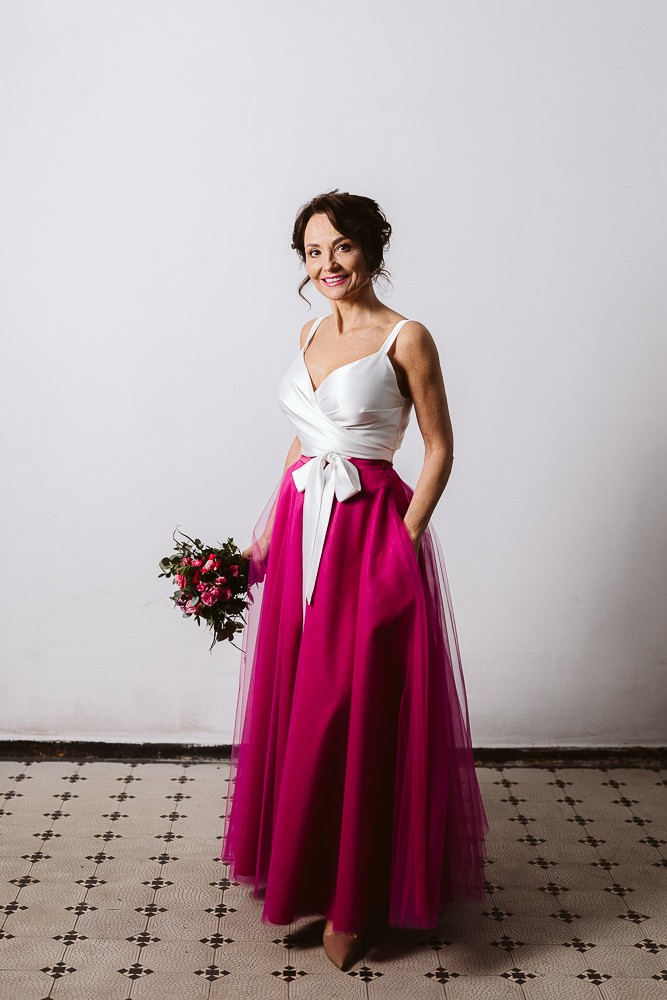 Ten model to idealny wybór dla tych kobiet, które chcą rozkloszowanej spódnicy, ale bez efektu poszerzonych bioder. Dzięki specjalnej konstrukcji spódnica rozkloszowuje się dopiero na dole, wysmuklając tym samym sylwetkę. Spódnica maxi, wykonana z 6 warstw włoskiego tiulu i satynowej podszewki. Spódnica posiada kieszenie w bocznych szwach.