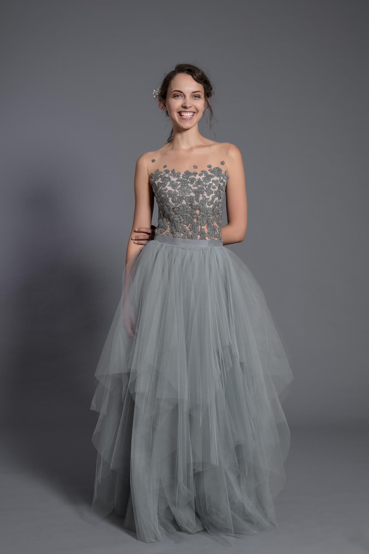 Model doskonale sprawdzi się jako element stylizacji ślubnej – w połączeniu z gorsetem, topem lub body – ale równie dobrze odnajdzie się w kreacjach wieczorowych. To idealna propozycja na bal, galę czy inne wyjątkowe okazje, w których liczy się efektowna, ale lekka forma.