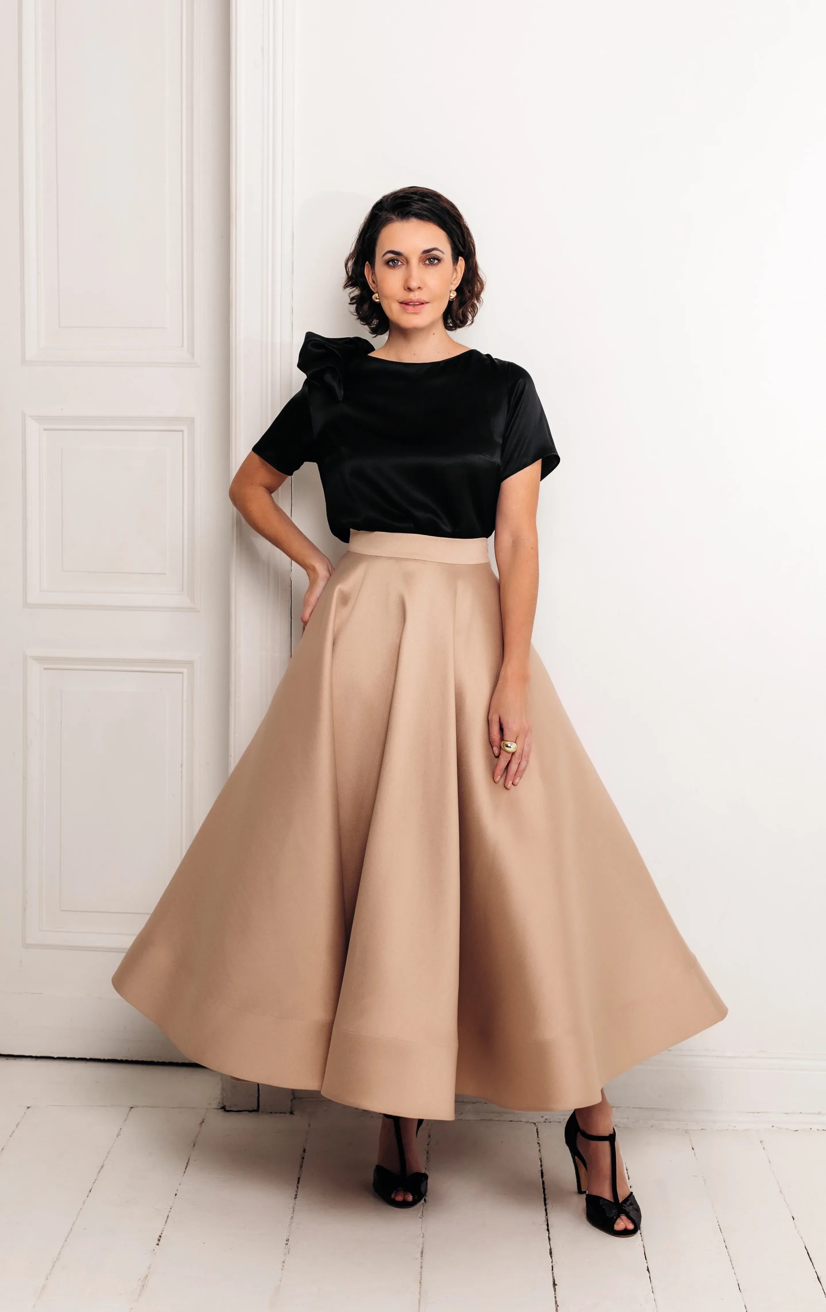 Mocno rozkloszowana spódnica wieczorowa z mikado – zjawiskowa elegancja na wielkie wyjścia