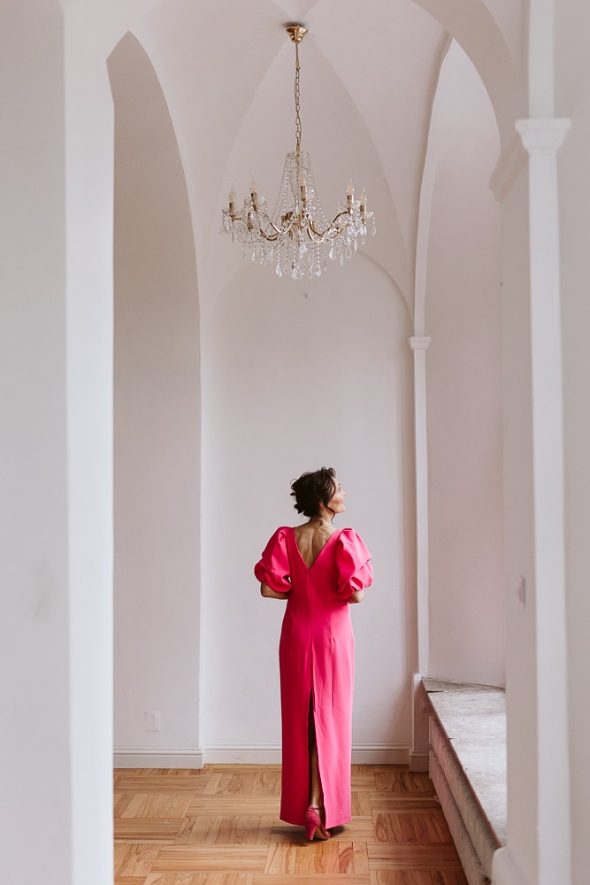 Sukienka wieczorowa z bufiastymi rękawami