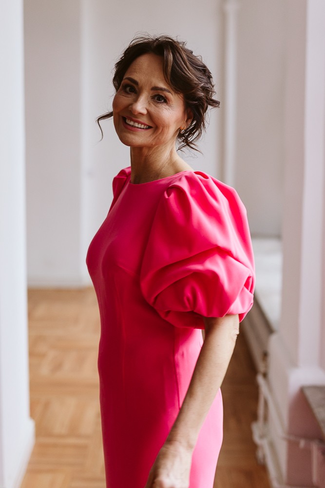 To idealna suknia dla mamy panny młodej lub pana młodego oraz na inne eleganckie okazje.